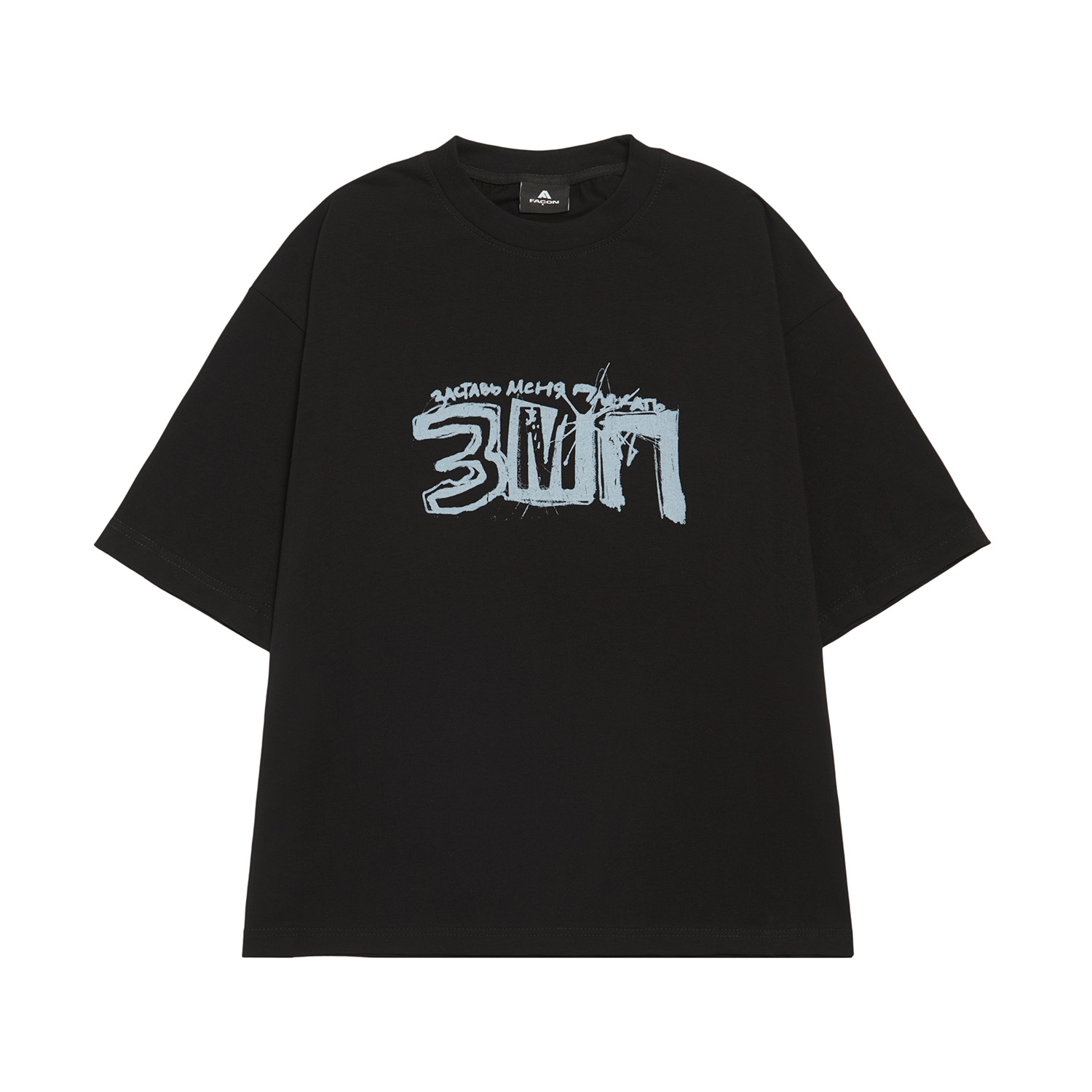 Хлопковая футболка оверсайз кроя. Принт выполнен шелкографией. Представлена в одном размере.